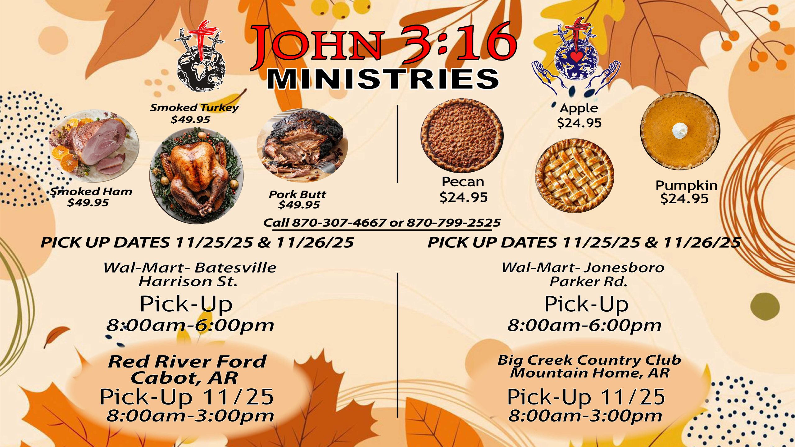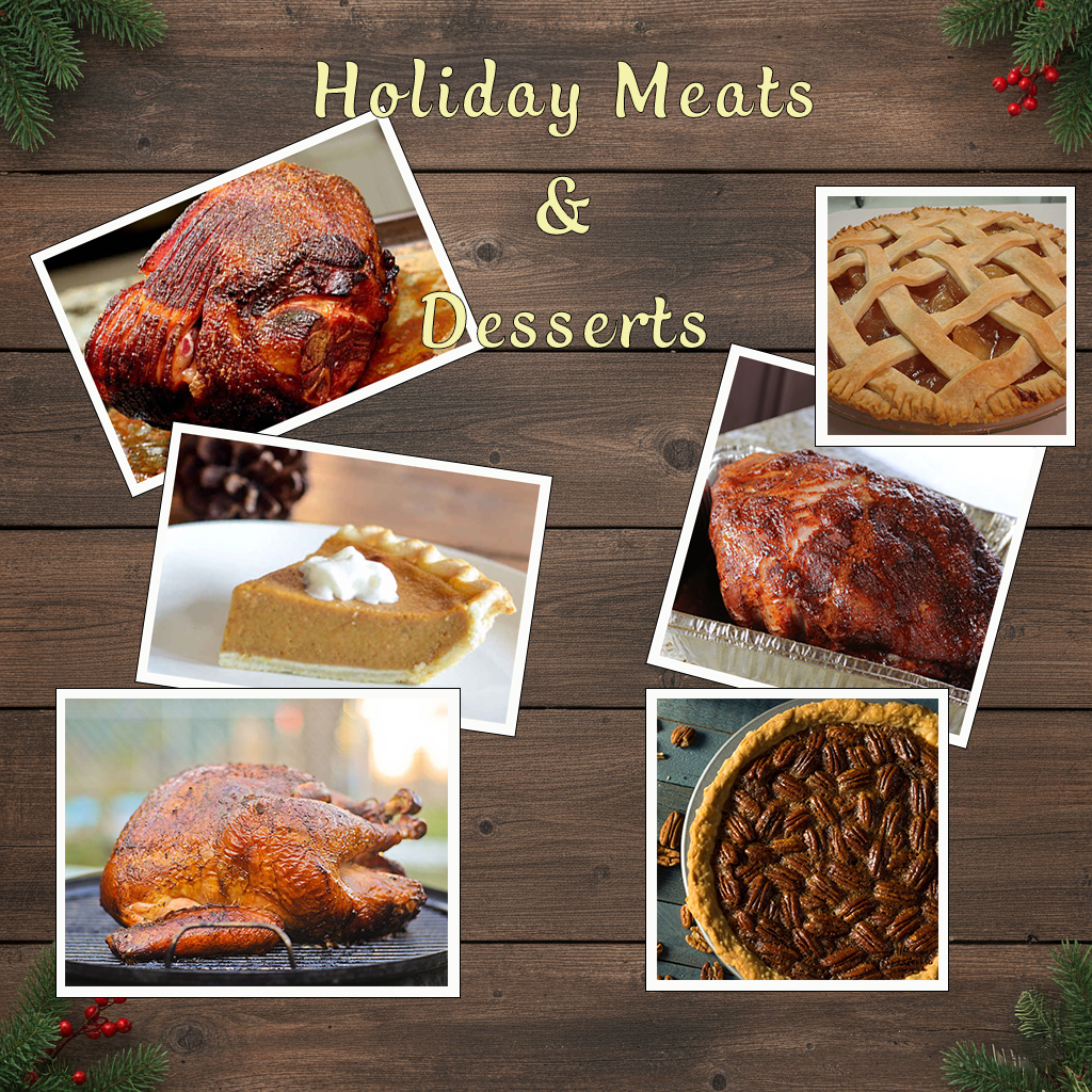 Let us take care of the hardest part of the holiday meals – The meats and the pies!